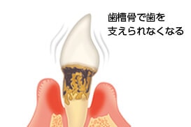 こちらはもともと歯周病の症状があり、咬合力が正常であるにも関わらず歯周組織を傷つけてしまうケースです。歯槽骨の吸収や歯周組織の炎症によって歯を支える力が弱っている状態ですので、そこに加わる力が大きくなくても歯は激しく動揺し、症状を一気に悪化させてしまいます。歯が抜け落ちてしまう前に早期に治療を受けましょう。